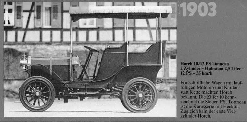 Am Anfang stand August Horch. E r lernte das Schmiedehandwerk und wurde Ingenieur. 1899 machte er sich mit 31 Jahren selbständig, um Autos zu bauen. Seine Firma wurde eine Nobelmarke, er selbst schied 1909 aus und fing neu mit dem Namen Audi an - Horch auf italienisch. 1028 begann die erfolgreiche Motorradfabrik DKW mit dem Automobilbau und erwarb Audi. 1932 wurden die Marken DKW, Audi, Horch und Wanderer in der Audi Union Zusammengeschlossen, symbolisiert durch die vier Ringe. Nach dem zweiten Weltkrieg begann es zunächst mit DKW- Modellen. Die Audi NSU Auto Union AG im schöpferischen Verbund mit der Volkswagenwerk AG leitete eine neue Ära des Erfolgs ein. In der Marke Audi spiegelt sich eine große Tradition. Die vier Ringe, ein Zeichen technischen Fortschritts, stehen dafür auch in Gegenart und Zukunft.